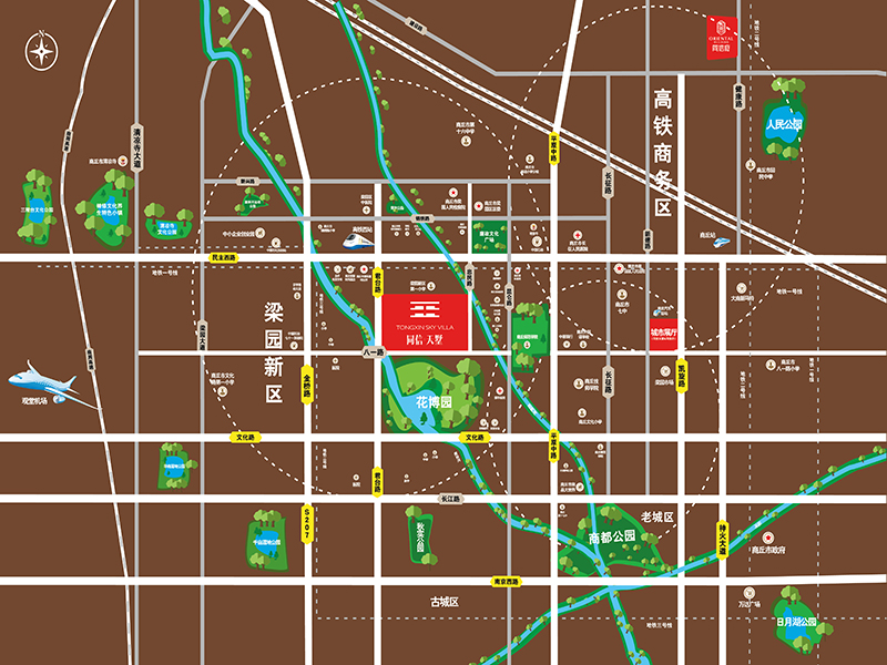 1、花博園;2、廉政廣場公園;3、秋實(shí)公園;4、商周文化公園;
